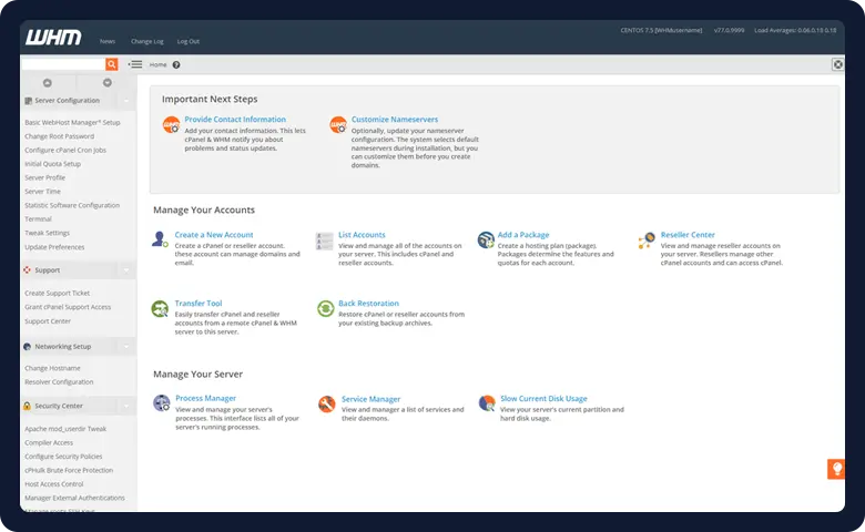 Next, create plans via the WHM panel. If you are using an ordering software like WHMCS, you can automate purchasing.